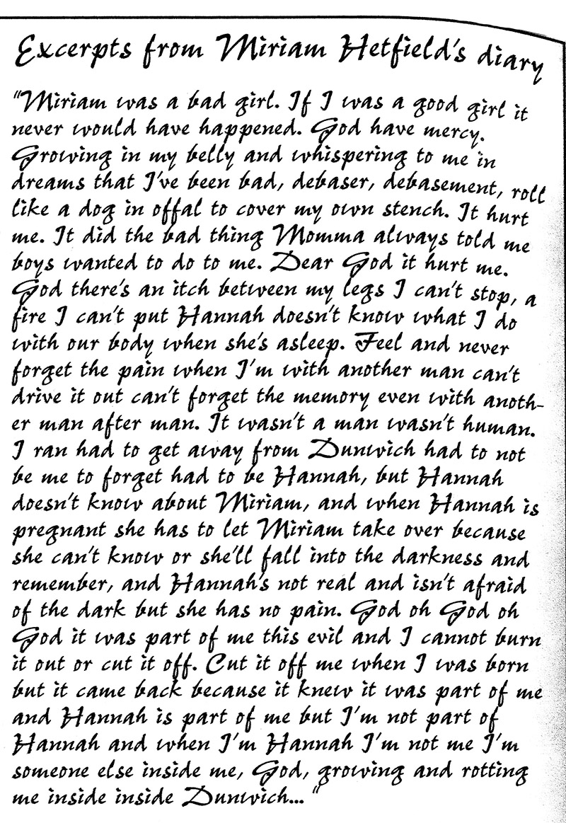 No, you guys look through it, you guys see—there’s a lot of stuff—that hand—or, that diary, rather, it definitely gets worse over time whereas the other one was just kind of really bland and “blah, blah, blah,” you know, daily stuff. This one starts out—there’s some information about leaving Dunwich. From there, it starts drifting into that. And then from—after what you read, it gets even less coherent.